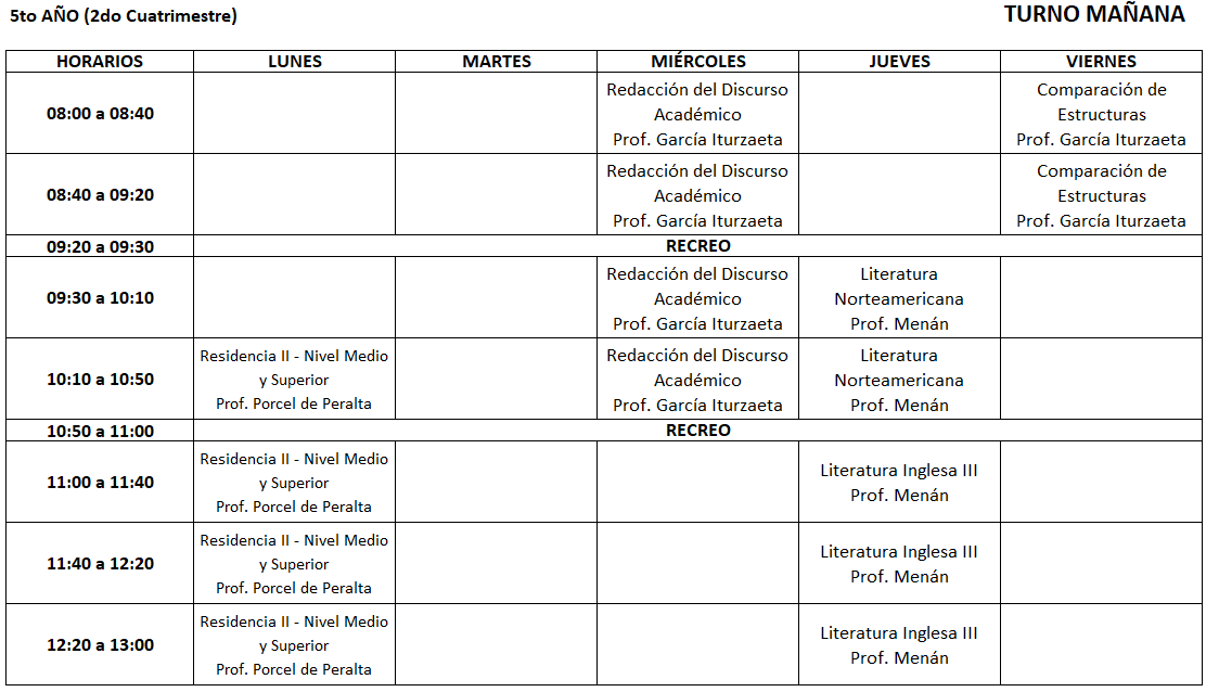 Turno mañana: 8 a 13 h.