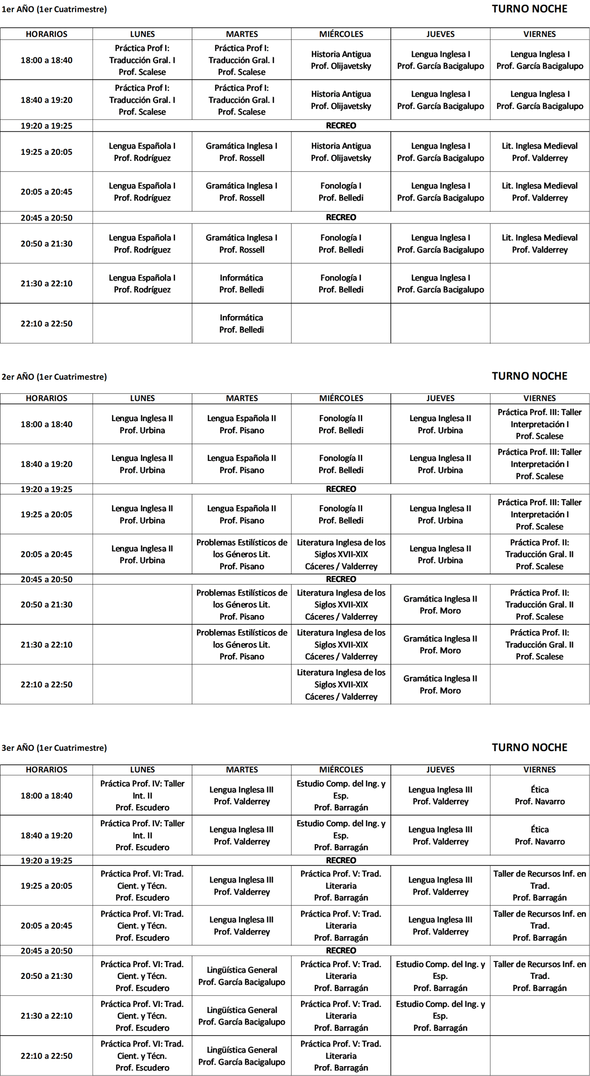 Horarios 1° cuatrimestre 2025 TN - Traductorado