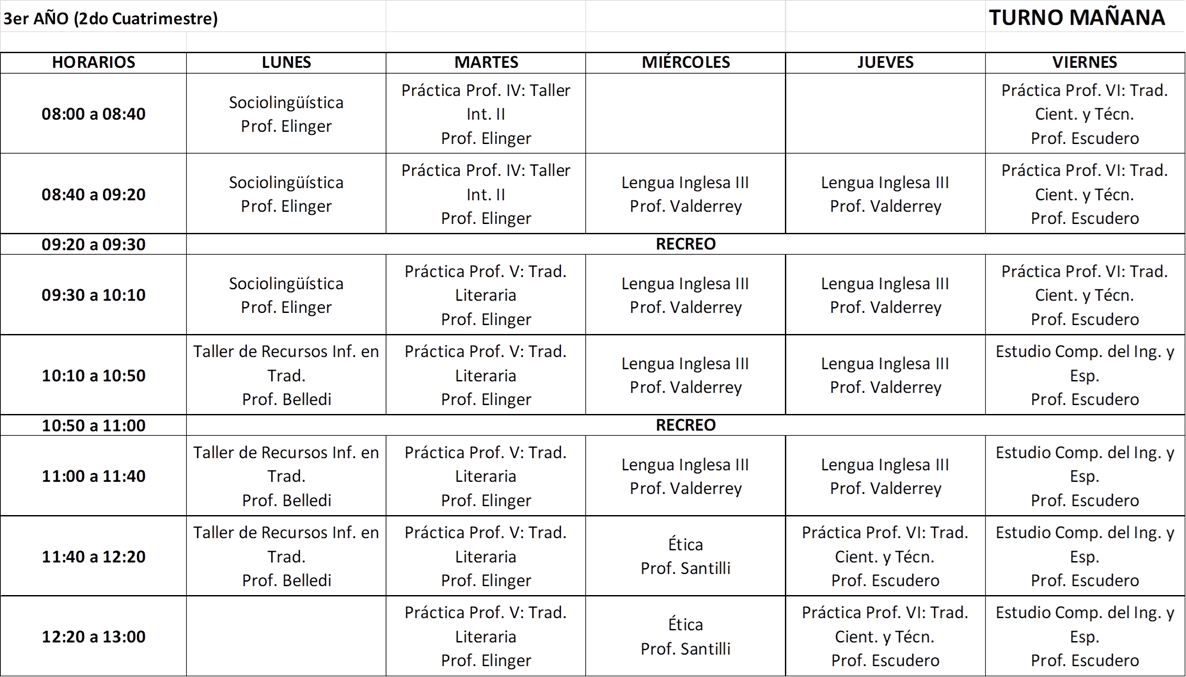 Horarios 2° cuatrimestre 2025 - TM Traductorado