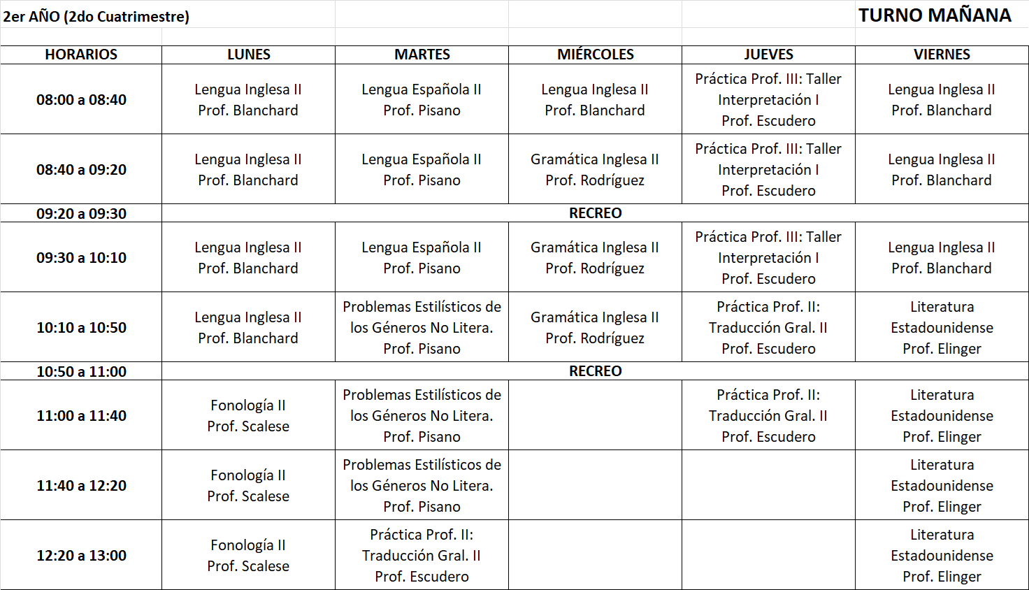 Horarios 2° cuatrimestre 2025 - TN Traductorado