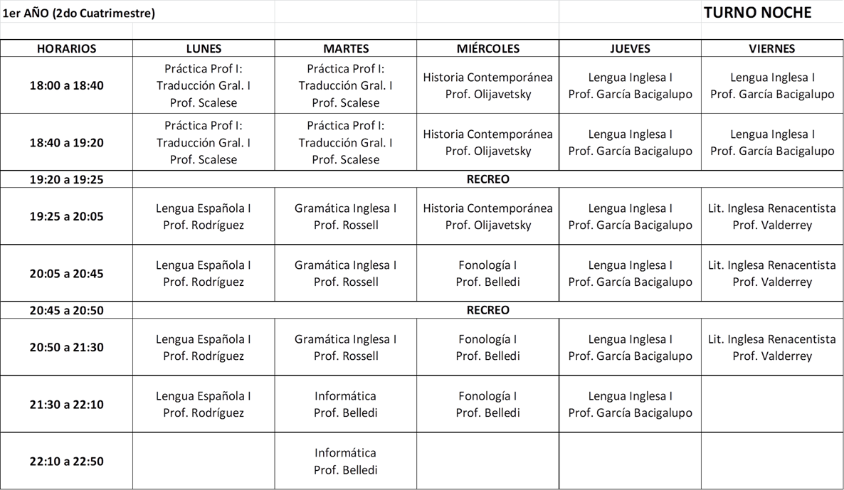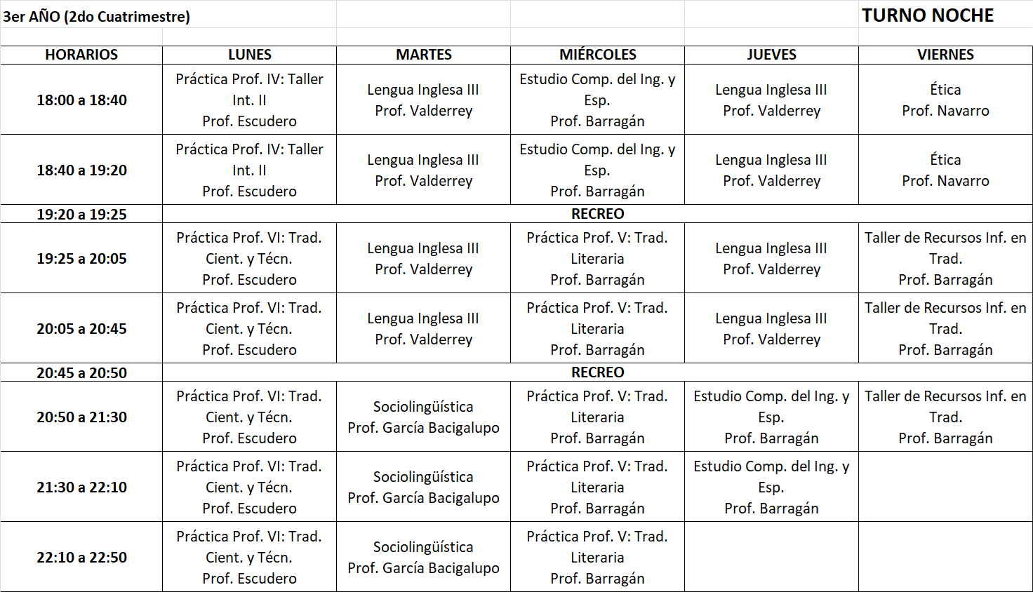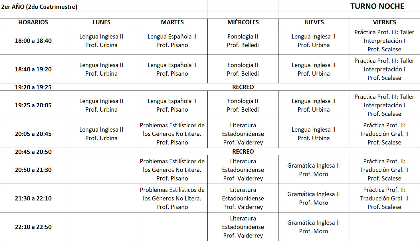 Horarios 2° cuatrimestre 2025 - TN Traductorado